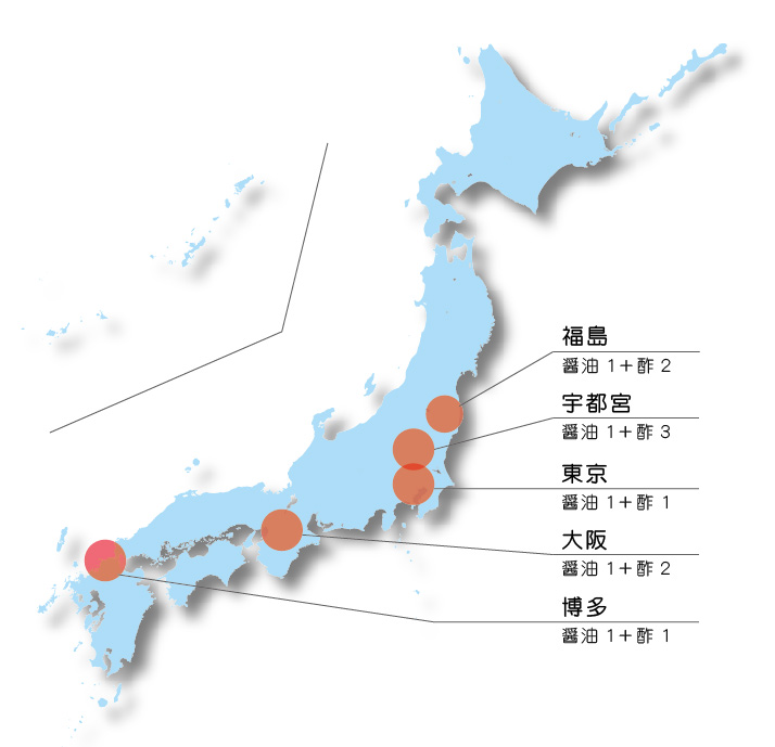 福島や宇都宮の餃子はお酢の割合が高く、大阪は既にブレンドされているタレを使う場合が多いという結果になりました。